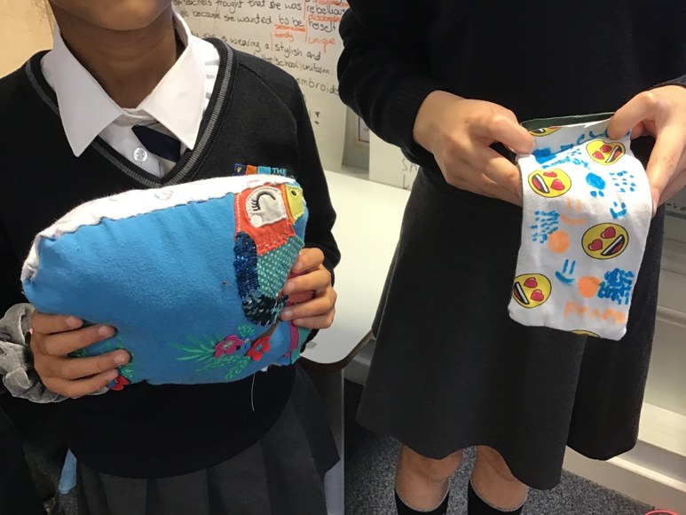 Year 5 children have worked very hard on the creation of these items to show us how unfashionable clothes can be upcycled rather than thrown in the bin when they are no longer needed. They planned, designed and made cushions, pencil pots and phone cases for other children their age. The planning and designing part was a success and here you can find some of their amazing outcomes!