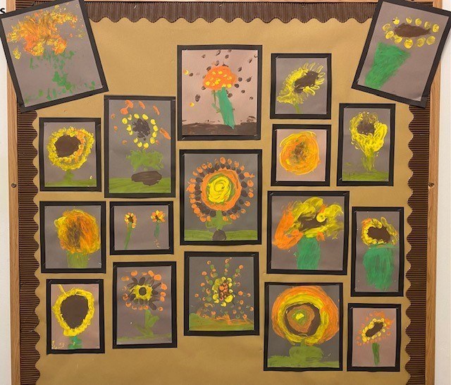 Year one have been identifying and naming common flowering plants this week. We made blossom pictures and painted sunflowers.